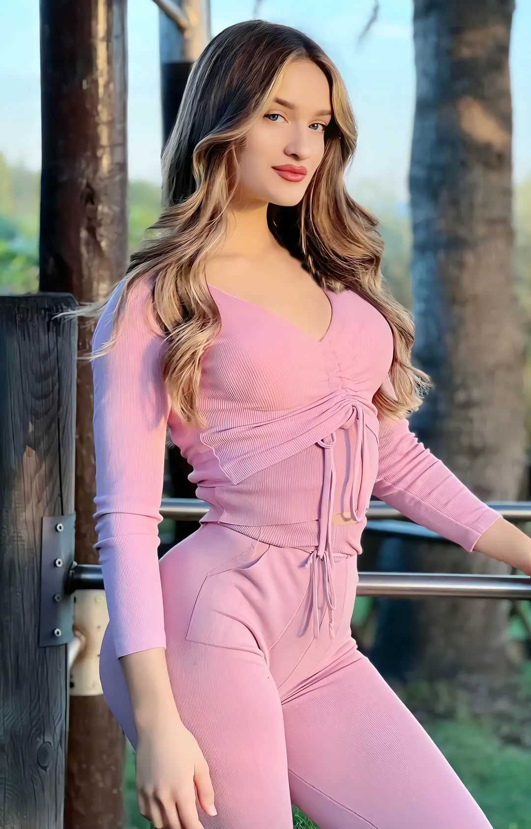 In the first photo, she is sitting on a bench in a park, surrounded by blooming flowers. Her delicate features and the way she holds herself give an air of elegance. She is wearing a simple top and jeans, yet she looks effortlessly stylish. As we move through the collection, we see her in different poses, each one more engaging than the last. One photo captures her looking up at the sky, her eyes filled with wonder. The lighting in the photos is expertly done, emphasizing her features and creating a dreamy atmosphere. These pictures are a testament to her natural beauty and the talent of the photographer.